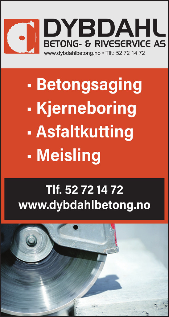 Dybdahl's betong er det firmaet i distriktet som er mest oppdatert innen maskiner og utstyr i sin bransje. Dette sammen med vår erfaring gjør at vi kan ta på oss mange spesialoppdrag andre sier nei til. Vi har sagblader som sager opp til 72 cm tykk betong. Og vi kan bore op til 1 meter i diameter.