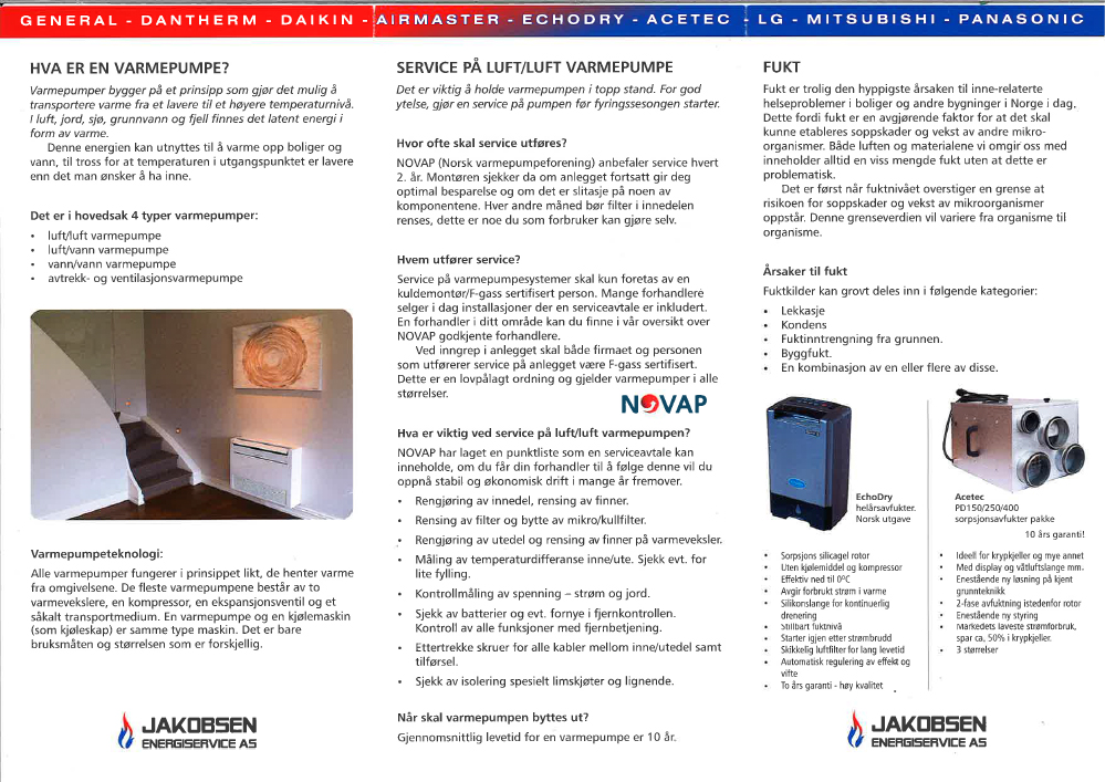 Installasjon av varmepumper, avfuktere og ozongeneratorer i alle størrelser. Vi kan også tilby fuktmåling.