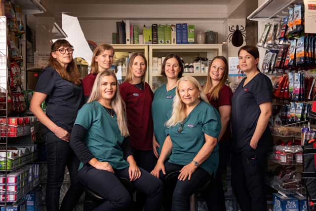 Våre ansatte trives godt hos oss og vi er derfor veldig stolte over å ha medarbeidere som har vært hos oss i mange år. Både veterinærer og dyrepleiere har høy faglig utdanning. Med vekt på egne interesse-områder har de vært på en lang rekke etterutdanningskurs. Det skaper trygghet både for dyr og eier.