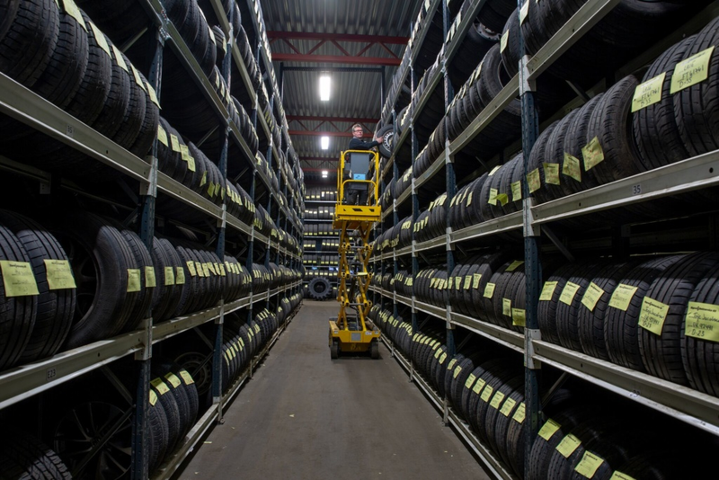I fem høyder stables dekkene, i regulert temperatur, slik at de er klare for en ny sesong på veien enten det er vinter eller sommer.