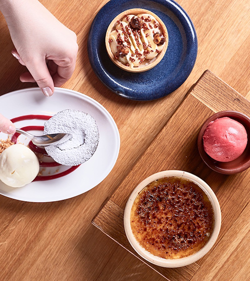 Menyen vår består av små til mellomstore retter som aller helst deles mellom alle på bordet. Vi har alltid et godt utvalg av både kjøtt, sjømat og vegetarisk tapas, og kan også lage veganske versjoner av enkelte retter. Til lunsj får du mettende salater og sandwicher, i tillegg til vår vanlige tapasmeny, alle ukedager frem til kl. 16. Vil du besøke oss med en større gruppe ordner vi langbord og selskapsmeny og vil du invitere til et litt mer privat selskap har vi et chambre separée med plass for 26 personer på Delicatessen Aker brygge. Her er det også skjerm med mulighet for å vise bilder eller presentasjoner.